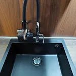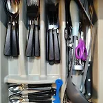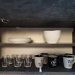 Напълно оборудваната кухня разполага с кафе и чай, както и с микровълнова печка, хладилник и кухненска посуда, необходими за самообслужване.